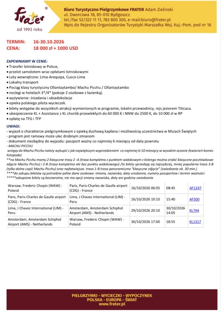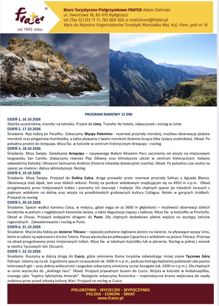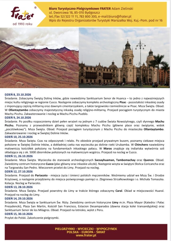 Zapraszamy na Pielgrzymkę do Peru!